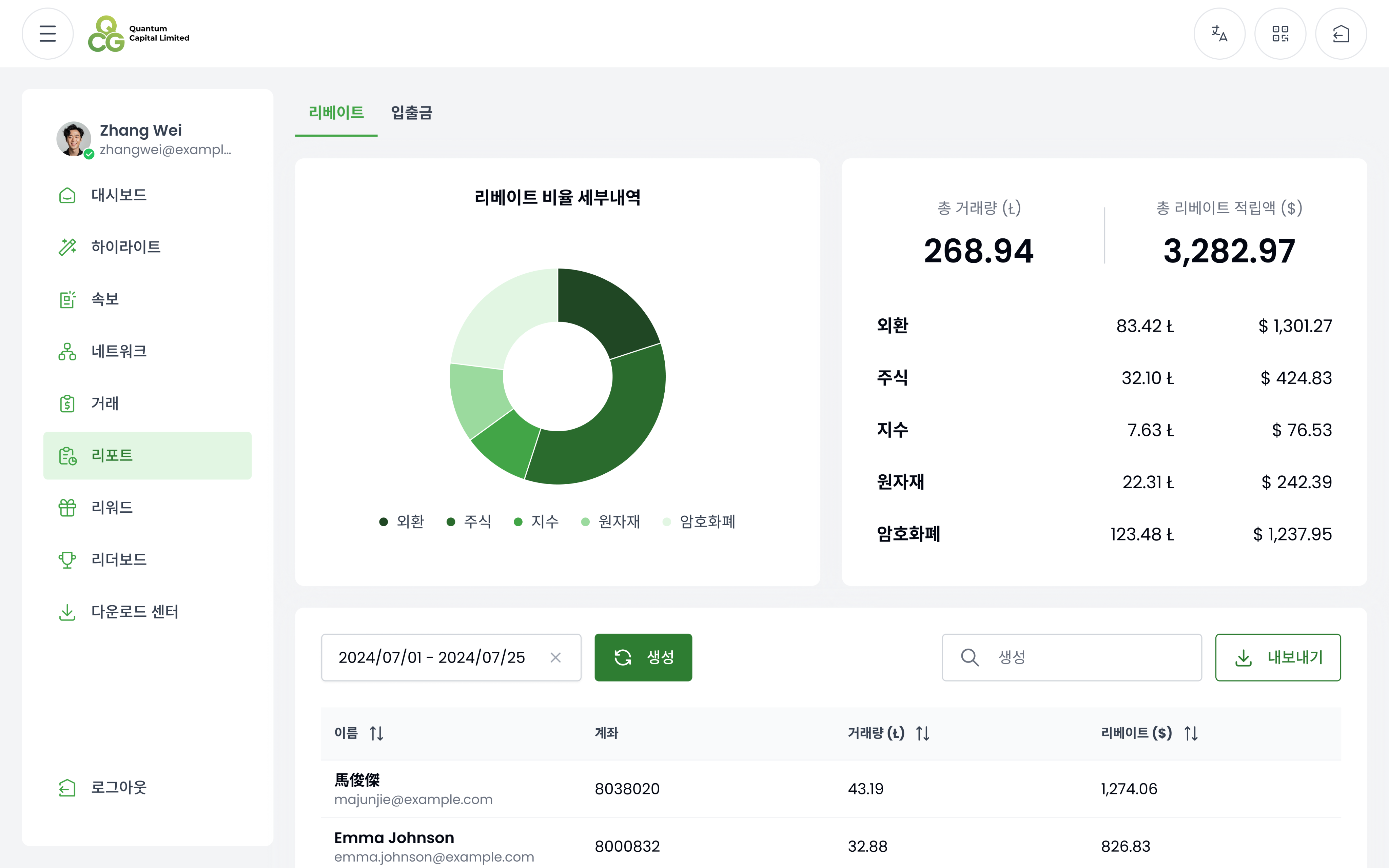 QCG의 IB 대시보드를 통해 추천 현황을 모니터링하고, 실시간 리베이트를 확인하며, 고객을 효율적으로 관리할 수 있습니다. 단순함과 속도를 위해 설계되어 모든 관리를 직접 통제할 수 있으므로, 데이터 추적에 시간을 쓰기보다 네트워크 확장에 집중할 수 있습니다.
